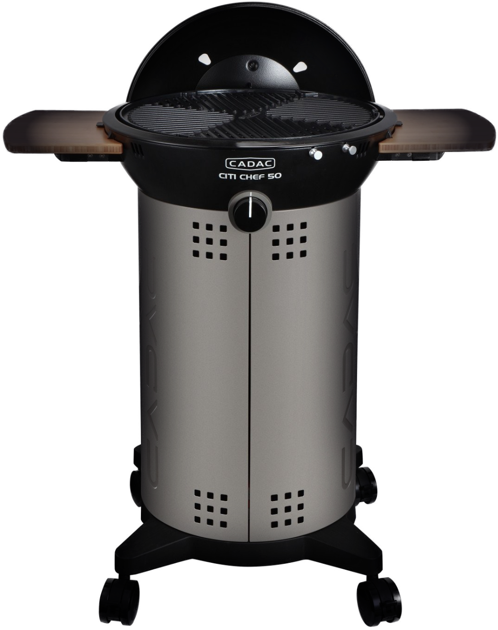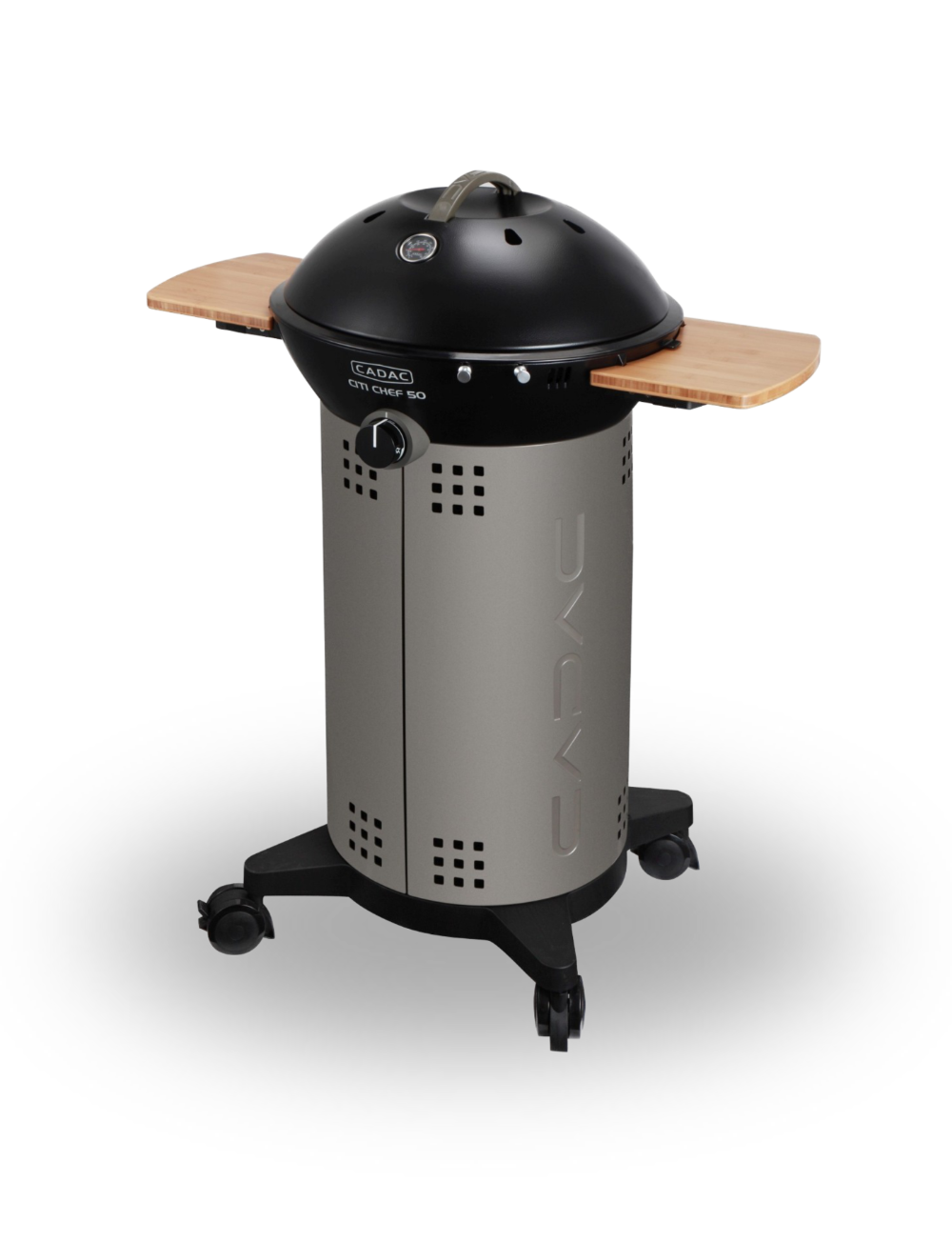 A stylish BBQ that is perfect for your balcony, patio, garden or terrace. The cooking grid is made from aluminium for perfect heating and coated in Cadac Greengrill ceramic for easy clean. The smart wooden side tables clip on and off, the can be stored inside the cabinet while the side handles and 4 castor wheels allow you to push it conveniently into any small storage area.